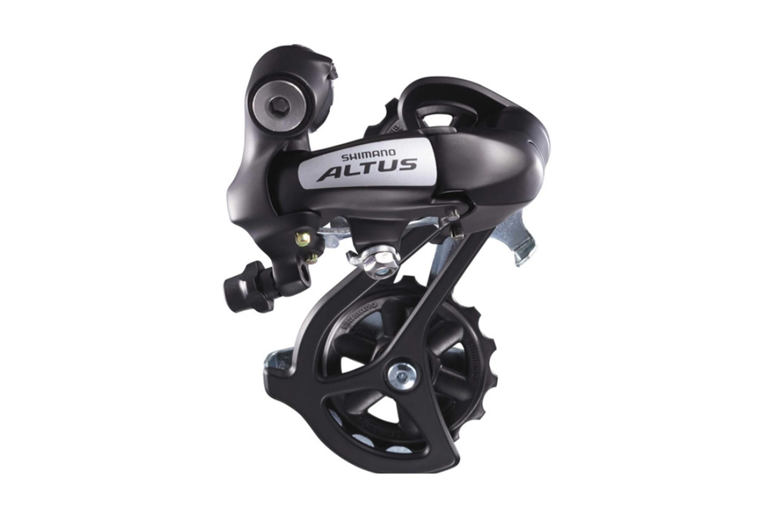 - Altus mountain bike rear derailleur with light action operation and over-size pulleys for a wide gear choice